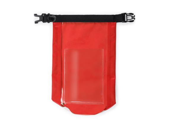 Водонепроницаемая сумка из прочного рипстопа. Практичное окошко с карманом для мобильного телефона. Водонепроницаемая система закрытия с защелкой и карабином для транспортировки. Общий объем: 3 л. Полезный объем: 2,5 л.